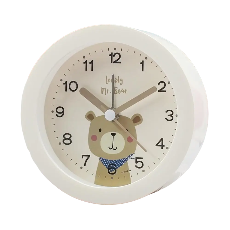 Ontdek de charmante en functionele Mr. Bear kinderwekker, speciaal ontworpen om de slaap van je kindje niet te verstoren. Deze analoge kinderwekker zonder tikgeluid is de perfecte metgezel voor elk kind dat leert klokkijken. Met zijn vriendelijke beer-design en duidelijke cijfers maakt het aanleren van tijd een leuke en boeiende ervaring. Geen storend getik meer 's nachts, alleen een vredige en ongestoorde slaap. Laat je kind elke ochtend wakker worden met een glimlach, klaar voor een nieuwe dag vol avonturen.