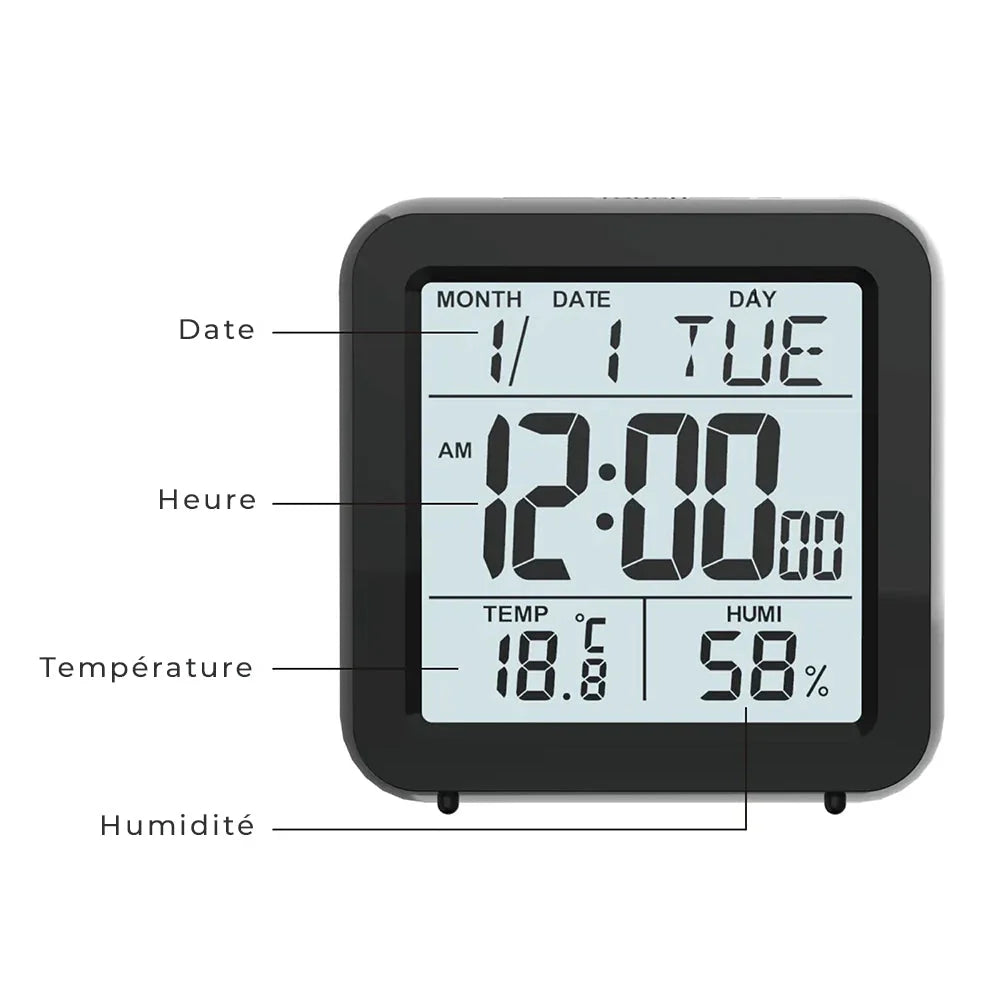 Ervaar elegantie en functionaliteit met onze Compacte wekker met datum en temperatuur. Ontworpen om je ontwaken te veraangenamen en je dag stijlvol te beginnen, combineert het verfijnd design met dagelijks gebruiksgemak.