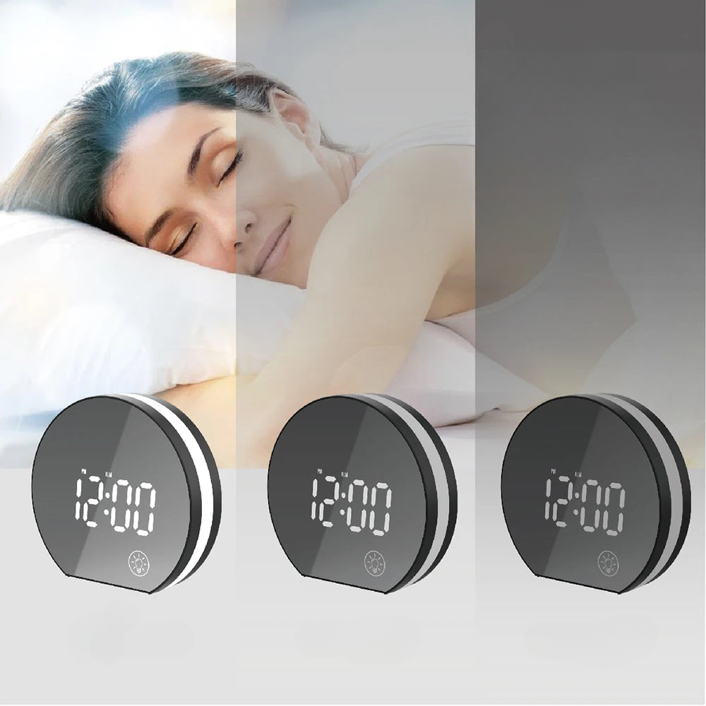 Word elke ochtend wakker met de ultieme combinatie van elegantie en functionaliteit. Onze digitale spiegelwekker met grote cijfers is meer dan alleen een tijdsaanduider; het is een modern accessoire dat perfect past in elke slaapkamer, woonkamer of kantoor. Het strakke, ronde design met de subtiele witte accenten aan de zijkant geeft een luxe uitstraling. Vergeet kleine, onleesbare schermen. Deze wekker is uitgerust met extra grote, heldere LED-cijfers die je moeiteloos afleest, zelfs midden in de nacht of van een afstand. En dankzij het spiegeloppervlak kun je snel controleren of je haar goed zit voordat je de deur uitgaat. Maak je leven makkelijker en stijlvoller met deze slimme toevoeging aan je interieur.
