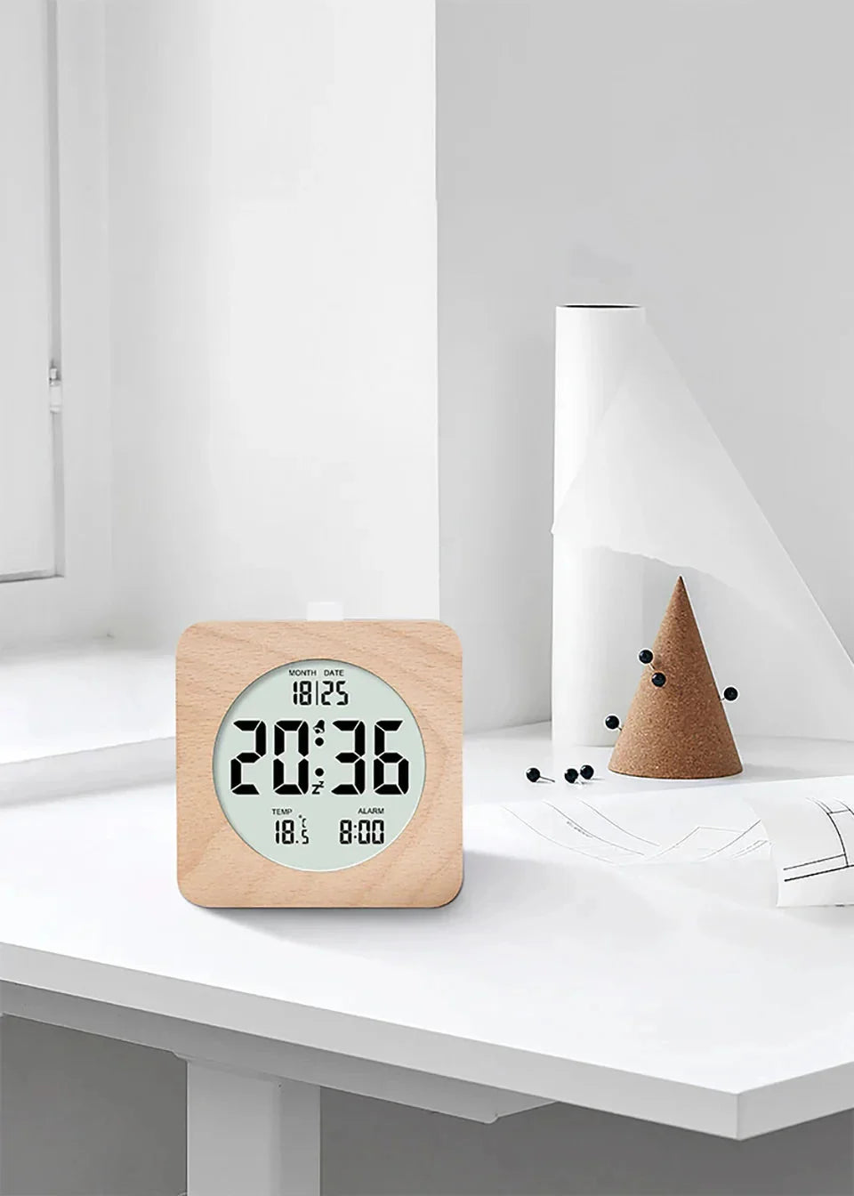 Kies voor een Digitale wekker in moderne houtlook en begin je dag goed!