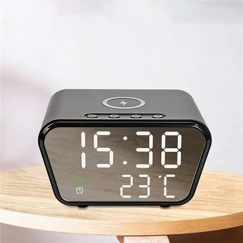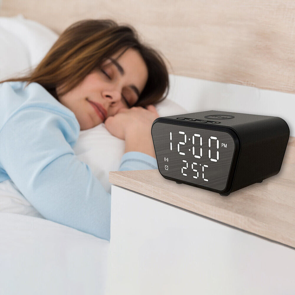 Ben je op zoek naar een slimme oplossing voor je nachtkastje die niet alleen de tijd weergeeft, maar ook je smartphone oplaadt? Dan is onze Digitale Wekker met Draadloze Oplader precies wat je nodig hebt! Dit moderne en stijlvolle apparaat is de ideale toevoeging aan elke slaapkamer of kantoorruimte. Word wakker met gemak en begin je dag met een volledig opgeladen telefoon, zonder gedoe met extra kabels.
