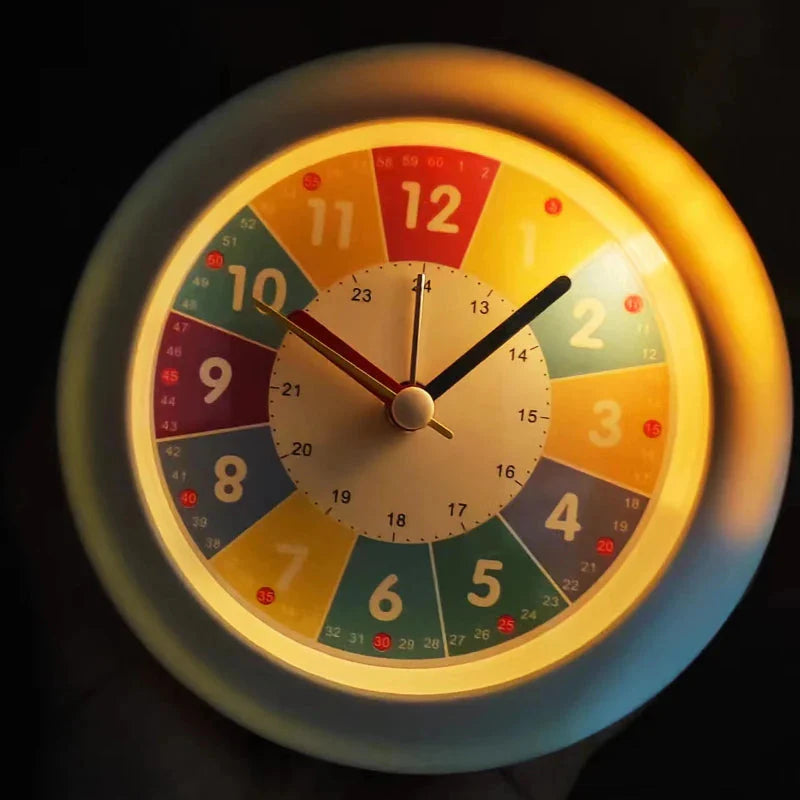 Maak de ochtendroutine van je kind leuk en leerzaam met onze Educatieve kinderwekker met nachtlampje! Deze vrolijke wekker is speciaal ontworpen om kinderen op een speelse manier te leren klokkijken. Met zijn duidelijke, kleurgecodeerde wijzerplaat en zowel uur- als minutenmarkeringen, helpt hij je kleintje de tijd te begrijpen en zelfstandiger te worden. Geen stress meer 's ochtends, maar een leuke start van de dag. Het ingebouwde nachtlampje zorgt bovendien voor een geruststellende gloed in het donker, zodat je kind zich veilig voelt gedurende de hele nacht. Een perfect cadeau voor elke jonge leerling!