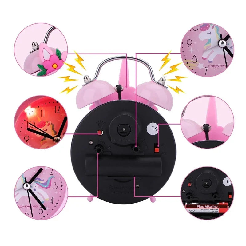 Deze eenhoorn kinderwekker met nachtlampje is speciaal ontworpen met het oog op kinderen. Het heldere, gemakkelijk afleesbare wijzerplaatontwerp, compleet met cijfers en stippen, maakt het een ideaal hulpmiddel om kinderen op een speelse manier te leren klokkijken. De vrolijke eenhoornafbeelding en de decoratieve bloemen en oortjes aan de bovenkant spreken tot de verbeelding en maken van wakker worden een feestje. Bovendien is de wekker voorzien van een praktisch nachtlampje, wat de angst voor het donker wegneemt en zorgt voor een comfortabele en rustgevende slaapomgeving. Het is de perfecte combinatie van functionaliteit, plezier en een vleugje magie voor de kinderkamer.