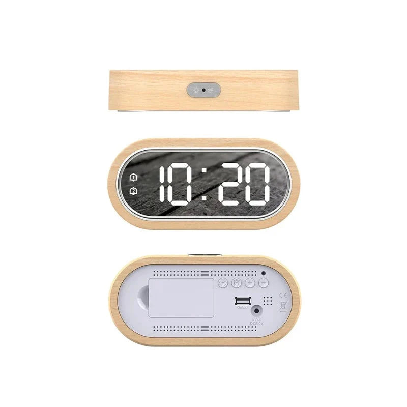 Ervaar elegantie en functionaliteit met onze Houten LED wekker met spiegeldisplay. Ontworpen om je ontwaken te veraangenamen en je dag stijlvol te beginnen, combineert het verfijnd design met dagelijks gebruiksgemak.