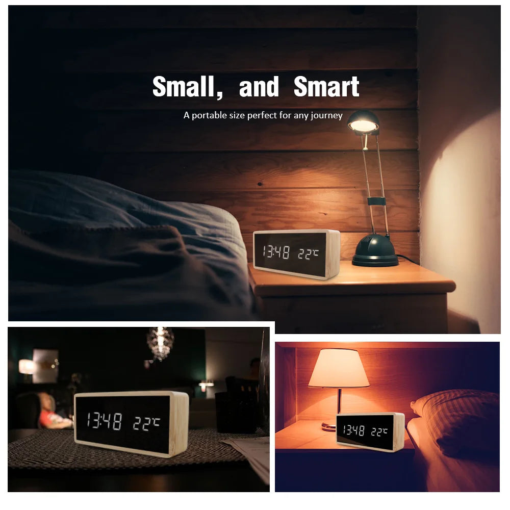 Zeg vaarwel tegen saaie wekkers en verwelkom de perfecte combinatie van stijl en functionaliteit in uw slaapkamer! Onze prachtige houten wekker met temperatuurweergave is niet zomaar een klok; het is een stukje design dat naadloos in elk interieur past. Stel je voor: wakker worden met de zachte gloed van een digitale tijdsaanduiding, omringd door de natuurlijke warmte van hout. Deze wekker is ontworpen om uw ochtenden aangenamer te maken, terwijl u direct op de hoogte bent van de kamertemperatuur. Geen gedoe meer met aparte thermometers, alles wat u nodig heeft is stijlvol geïntegreerd. Perfect voor iedereen die waarde hecht aan esthetiek én praktische bruikbaarheid.