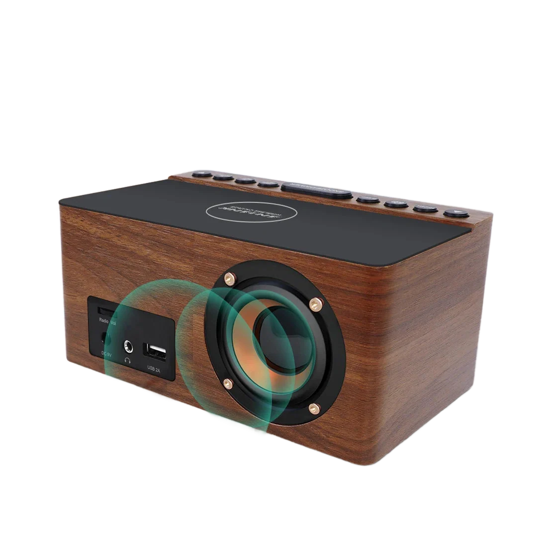 Houten wekkerradio met draadloze oplader