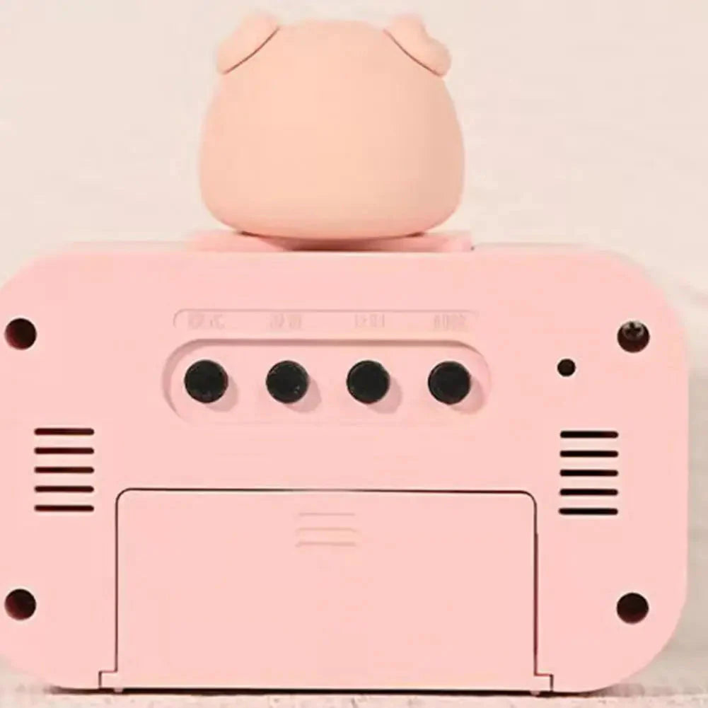 Maak de ochtenden magisch met de Lichtroze Digitale Kinderwekker met Varken!