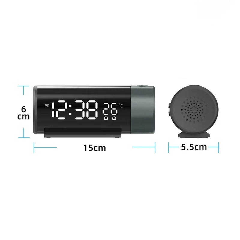 Ervaar elegantie en functionaliteit met onze Moderne wekker met projectie op plafond. Ontworpen om je ontwaken te veraangenamen en je dag stijlvol te beginnen, combineert het verfijnd design met dagelijks gebruiksgemak.