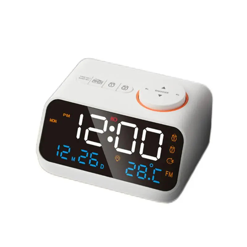 Ervaar elegantie en functionaliteit met onze Oplaadbare digitale wekker met radio. Ontworpen om je ontwaken te veraangenamen en je dag stijlvol te beginnen, combineert het verfijnd design met dagelijks gebruiksgemak.
