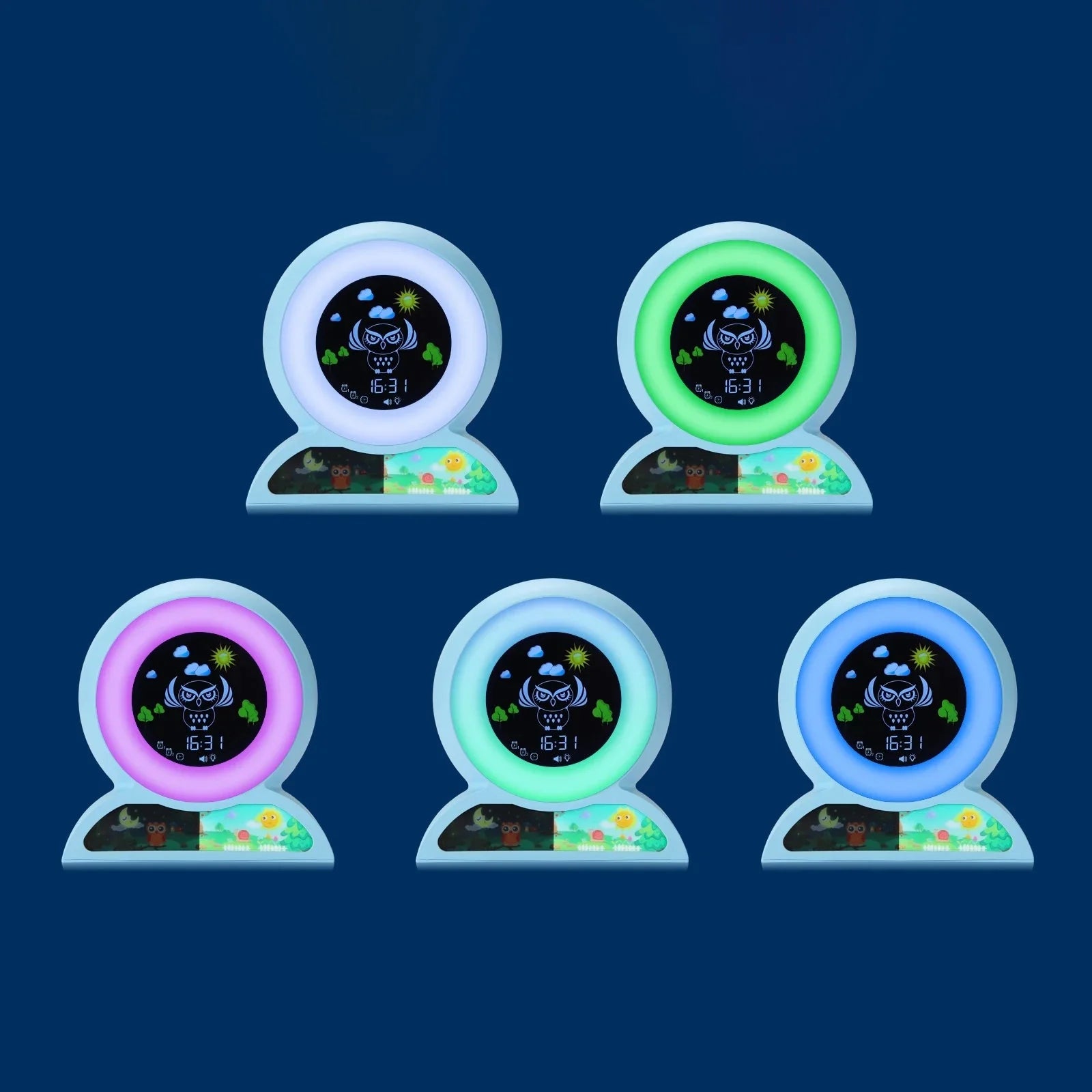 Deze innovatieve slaaptrainer toont met duidelijke visuele signalen of het nog nacht is of al dag. De bovenste display met de uil en de tijd verandert van kleur en beeld om aan te geven of het tijd is om te slapen of om wakker te worden. De onderste balk met de twee helften – een nachtscène en een dagscène – versterkt dit effect, waardoor zelfs de jongste kinderen begrijpen wanneer ze het bed uit mogen. Geef je kind de controle over zijn slaapritme met deze slimme en vriendelijke slaaptrainer voor kinderen met nachtlamp.
