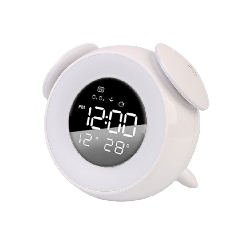 Stel je voor: jouw kind wordt elke ochtend zachtjes gewekt door een vriendelijk geluid en een geleidelijk toenemend licht, klaar voor een nieuwe dag vol avonturen. Deze slimme kinderwekker met nachtlampje is niet zomaar een wekker; het is een multifunctionele metgezel die bijdraagt aan een rustige nachtrust en een fijne start van de dag. Het moderne witte design met de schattige 'oren' past perfect in elke kinderkamer, van de kleinste avonturier tot de beginnende tiener. Het grote, duidelijke digitale display toont niet alleen de tijd, maar ook de temperatuur, zodat je altijd op de hoogte bent van het comfort in de kamer. Dit is dé oplossing voor ouders die op zoek zijn naar een betrouwbare en kindvriendelijke wekker die meer doet dan alleen de tijd aangeven.