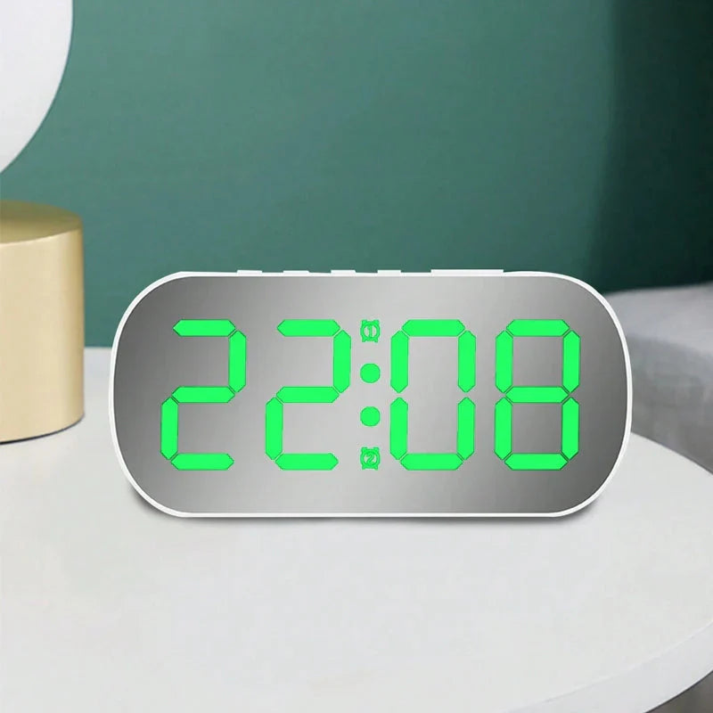 Word elke ochtend wakker met onze stijlvolle spiegel wekker. Dit handige apparaat combineert een helder spiegeloppervlak met een duidelijke digitale tijdweergave, perfect voor je slaapkamer, kantoor of woonkamer. De grote, heldergroene lichtgevende cijfers zorgen ervoor dat je de tijd altijd moeiteloos kunt aflezen, zelfs in het donker of vanaf een afstand. Geen gedoe meer met kleine displays; deze wekker is ontworpen voor optimaal gebruiksgemak. Bovendien voegt het strakke, minimalistische design een moderne touch toe aan elk interieur. De wekker is niet alleen functioneel, maar ook een elegant decoratief stuk.