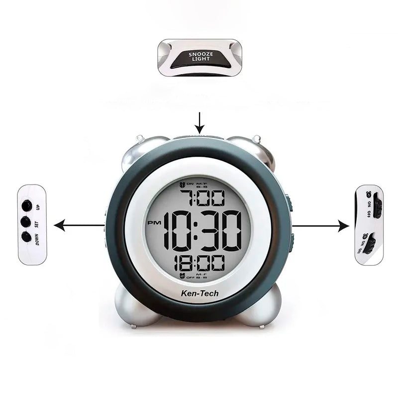 Ben je het zat om door je wekker heen te slapen? Dan is deze Ken-Tech wekker met extra luid alarm precies wat je nodig hebt! Speciaal ontworpen voor diepe slapers, vroege vogels of iedereen die gewoon een beetje extra hulp nodig heeft om op tijd uit bed te komen. Met zijn dubbele alarminstellingen en een krachtig, duidelijk geluid, zorgt deze wekker ervoor dat je geen enkele afspraak mist. Het heldere, blauwe digitale display is makkelijk af te lezen, zelfs in het donker, en de intuïtieve bediening maakt het instellen van je alarm een fluitje van een cent.